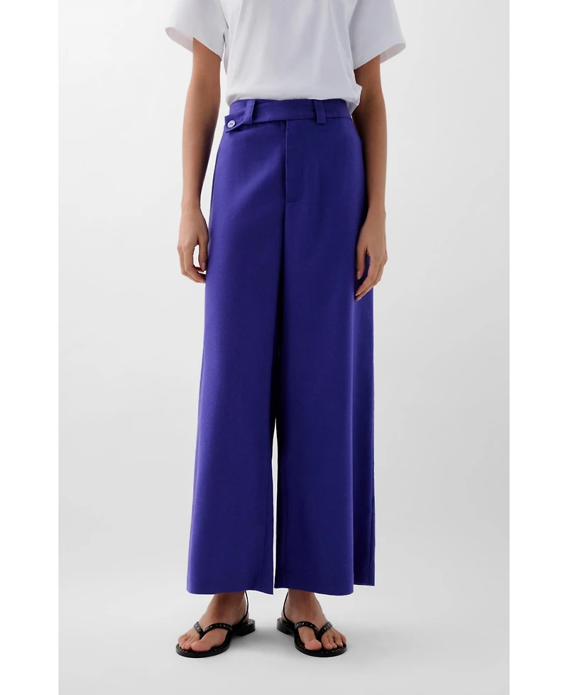 Linen trousers. Full Lenght. Two side pockets and two back pockets. Asymmetric waistband. Button and zip fastening concealed in tone.