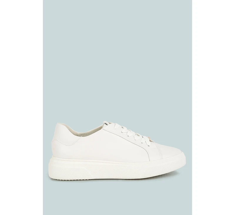 The leather sneakers are casual yet look chic and luxurious with high quality material. The sneakers have comfortable softly padded insoles and are quite versatile. You can pair these with varied outfits from jeans to trousers!A Upper Material: Genuine LeatherOuter sole: RubberClosed Rounded ToeLace Up DesignChunky SoleMetallic DetailLightly Cushioned InsolesRCSH4203