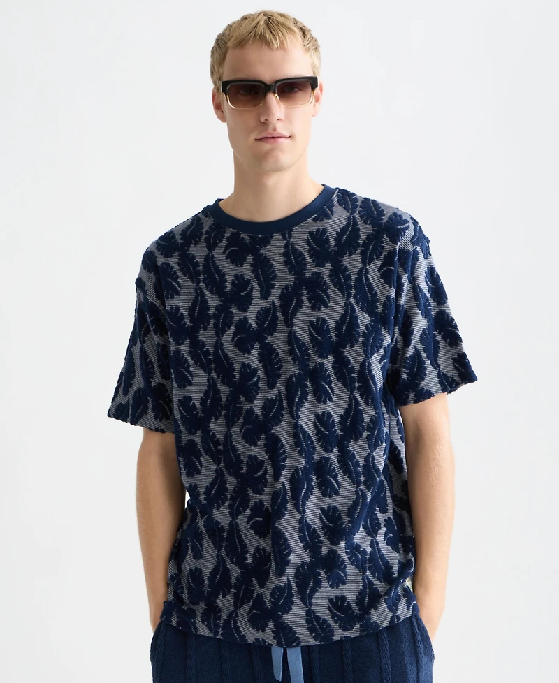Infused with distinctive style, this Scotch & Soda T-shirt features a regular-fit with a classic crewneck for timeless appeal. The all-over jacquard design is accented by a woven label at the bottom corner, adding a subtle branded detail.