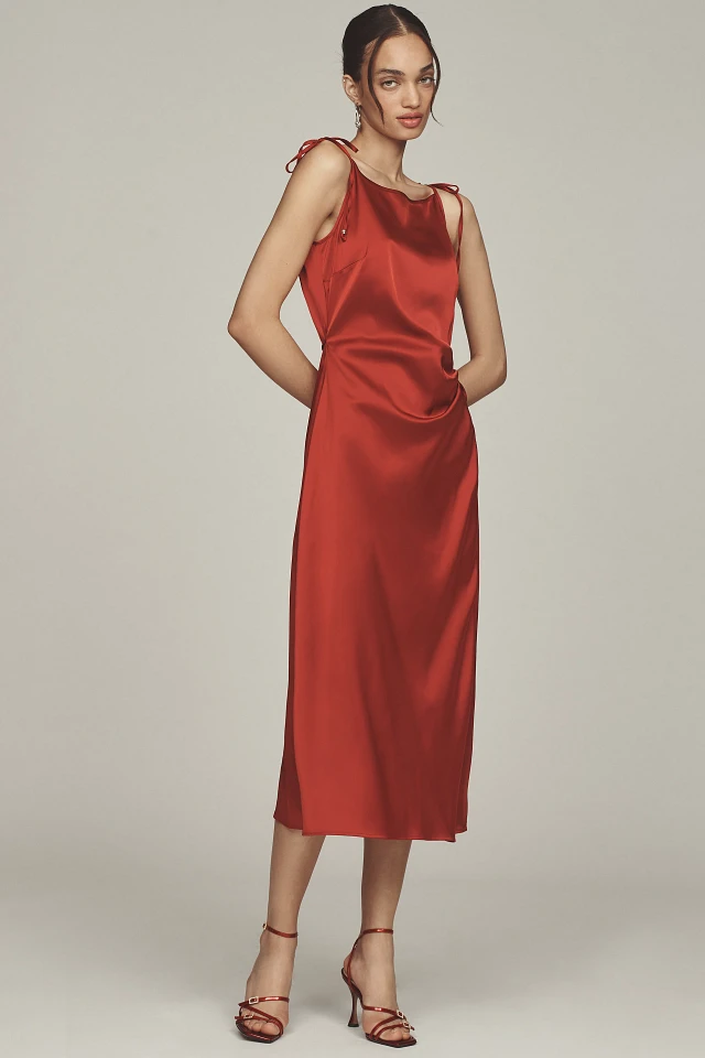 Mac Duggal Floral Chiffon Tie-Neck Tiered Midi Dress