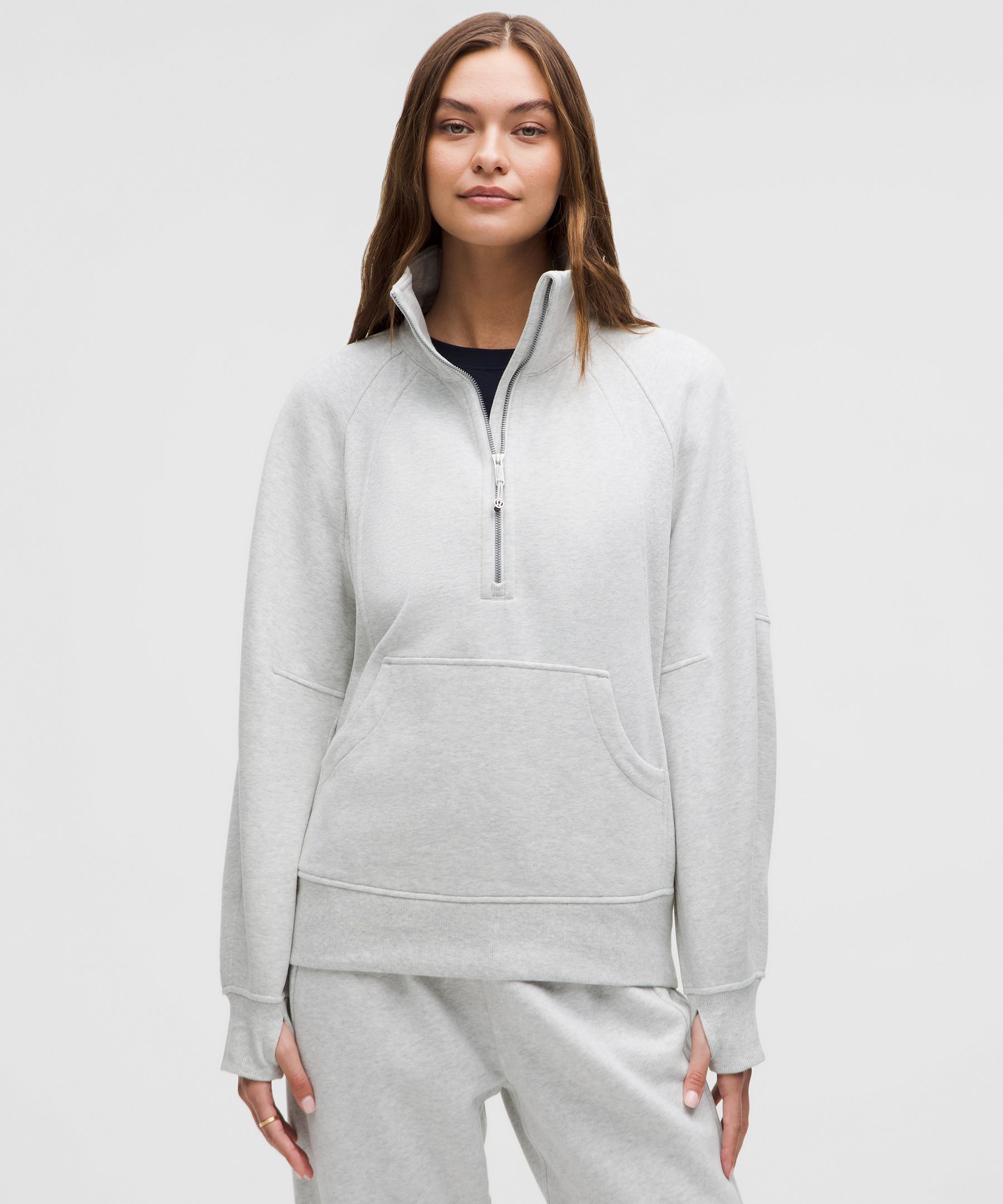 With an oversized fit, a cozy funnel neck, and the soft fabric you love, this roomy Scuba half-zip silhouette maximizes post-practice comfort.