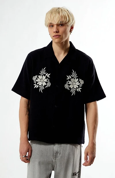 Pacsun Black Floral Embroidered Oversized Resort Camp Shirt