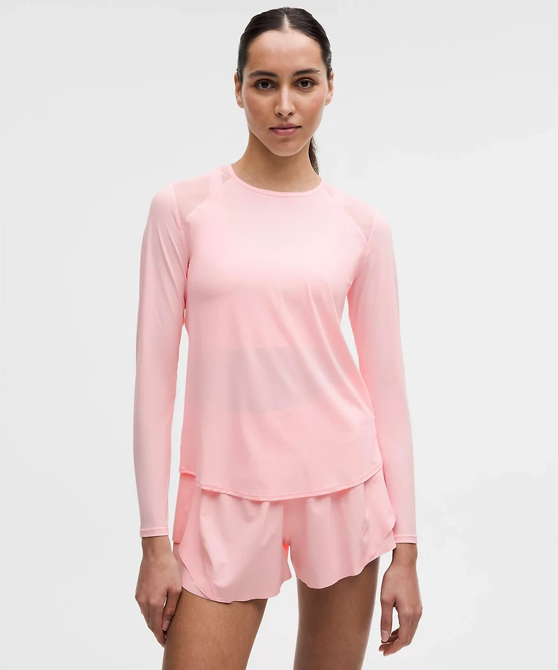 Sprints anyone? This lightweight long sleeve has mesh fabric panels for breathability in sweaty situations.