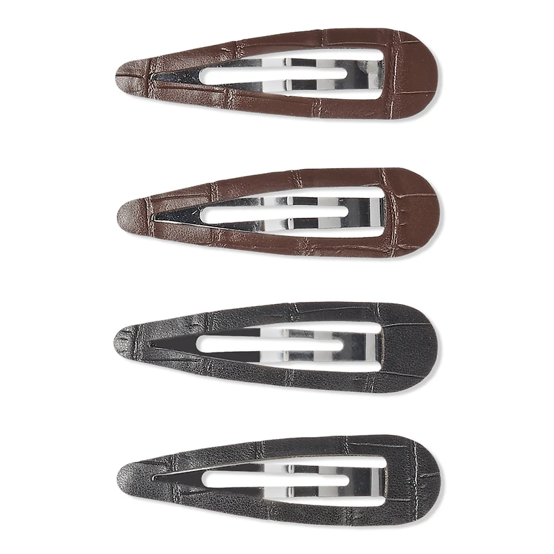 PRIMP 7CM SNAP CLIPS 4CT. Features: Dark brown and black snap clips in faux leather with textured croc finish. : :