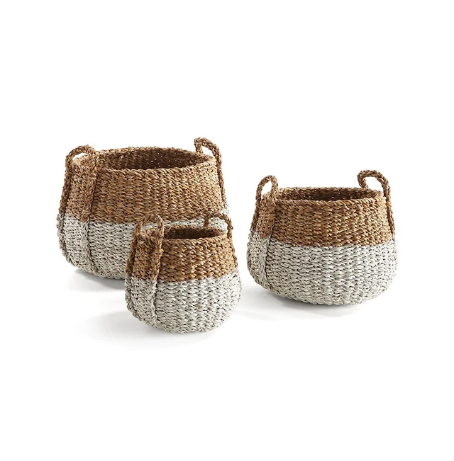 Seagrass Round Baskets With Handles, Set Of 3