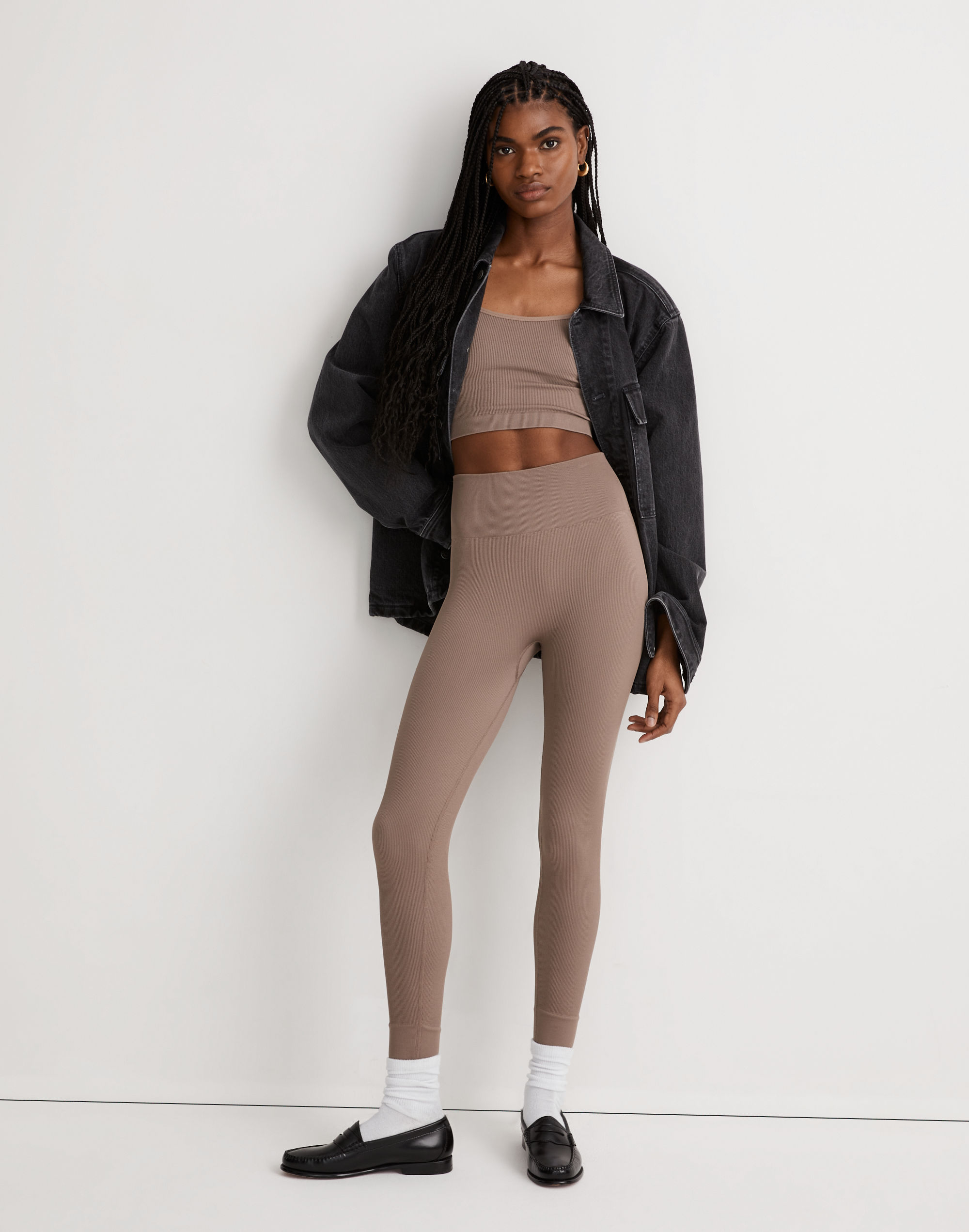 The fabric: supersoft and buttery against the skin, our ribbed Seamless fabric has serious bounce-back power (and is made with recycled nylon). The fit: slim and cropped, this versatile tank has delicate cami straps. The set: try it with the matching high-waisted leggings or baggy jeans.