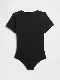 - Soft, ultra-stretchy nylon-blend T-shirt bodysuit.