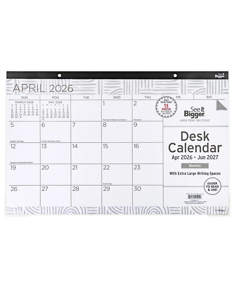 The See it Bigger medium dated desk calendar covers 15 months from April 2026 to June 2027. It is perfect for providing organization and visibility in your workspace.