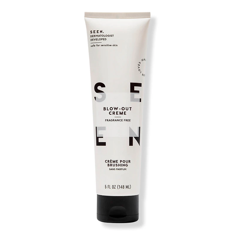 BLOW OUT CREME FRAGRANCE FREE. Features: Designed by a Harvard-trained Dermatologist. Award-Winning. All hair types, Color-safe/Keratin-safe. Clinically proven to be non-comedogenic (won't clog pores) and non-irritating. Formulated without fragrance, sulfates, silicones, phthalates, parabens, dyes, pore-clogging oils, gluten, formaldehyde/formaldehyde releasers, or animal testing. This product received the National Eczema Association's Seal of Acceptance. This means those with sensitive or eczema-prone skin can use fragrance free SEEN and enjoy happy, healthy skin and gorgeous hair!. Benefits: Healthier scalp and skin, and beautiful hair. Promotes scalp health. Promotes skin clarity. Smooths and strengthens hair. Heat protection. Pollution and UV protection. Key Ingredients: Hemisqualane: Plant-sugar derived, nature's answer to silicone; reduces frizz; provides color and heat protection. Bisabolol: Naturally-derived ingredient with skin-soothing properties. Ceratonia Siliqua (carob tree): Increases hair elasticity and resilience, builds the damage barrier and strengthens the hair fiber. Moringa Oleifera (horseradish tree): Offers pollution and UV protection for hair (but not skin).