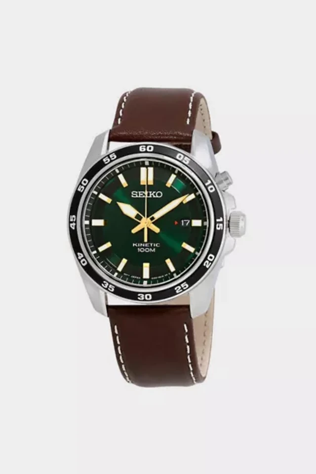 Seiko Kinetic Green Dial Brown Leather Men's Watch SKA791