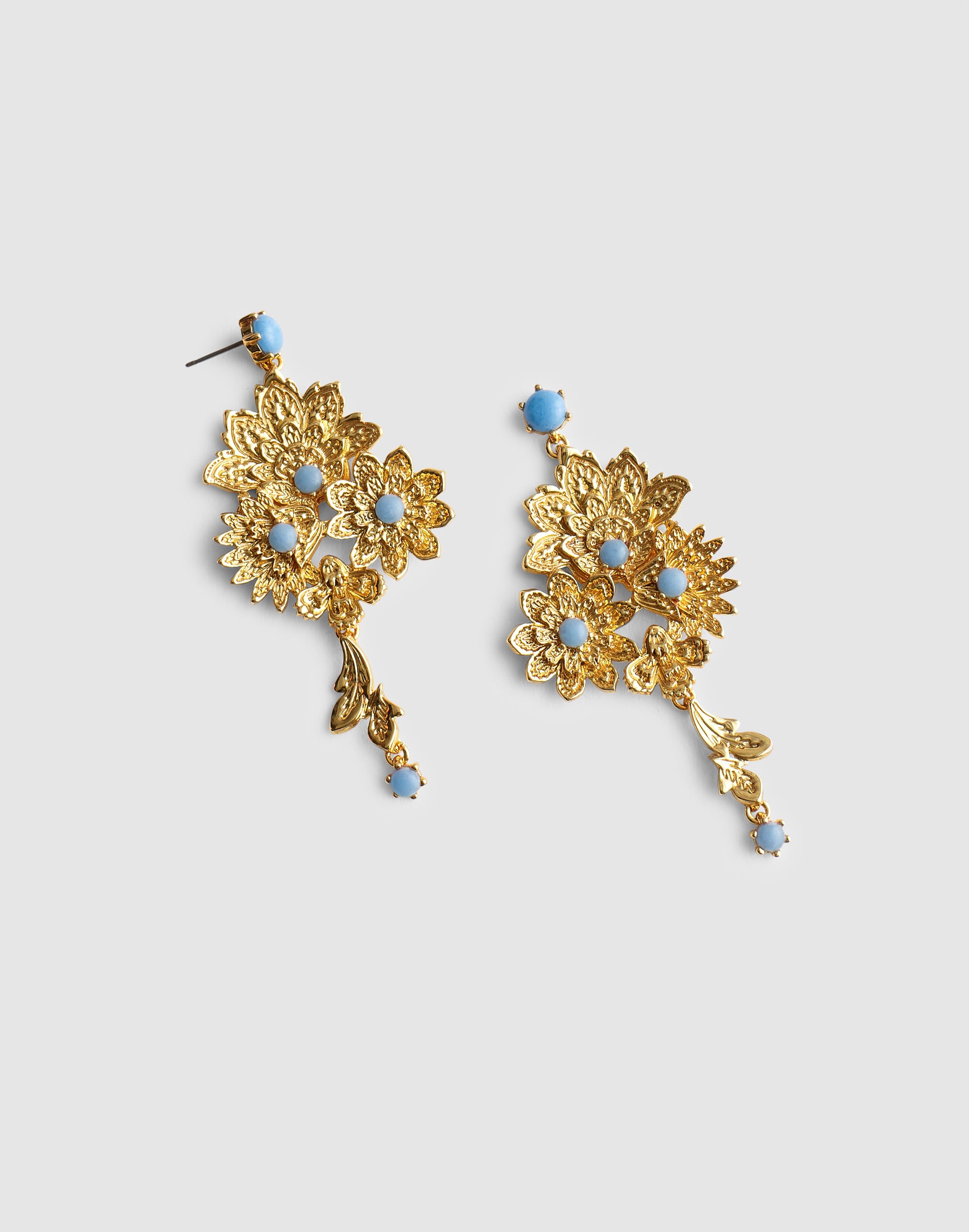 Featuring a bold floral motif, these earrings pay homage to traditional South Asian textiles. An everyday statement finished with reconstituted semiprecious white jade.