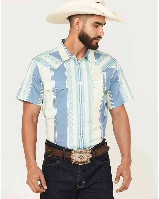 Sendero Provisions Men's Wyatt Serape Striped Print Short Sleeve Snap Western Shirt
