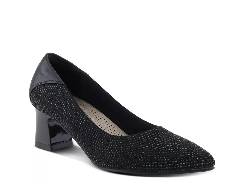Liven up your formalwear wardrobe with the Senna pump from Patrizia by Spring Step. Shining rhinestones catch the eye with glittery style, while the classic, pointed toe silhouette ensures versatile style.