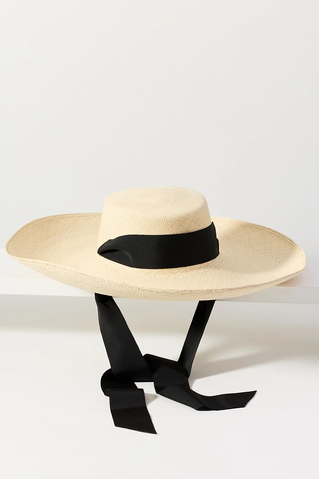 Sensi Studio Ribbon Tie Floppy Straw Hat