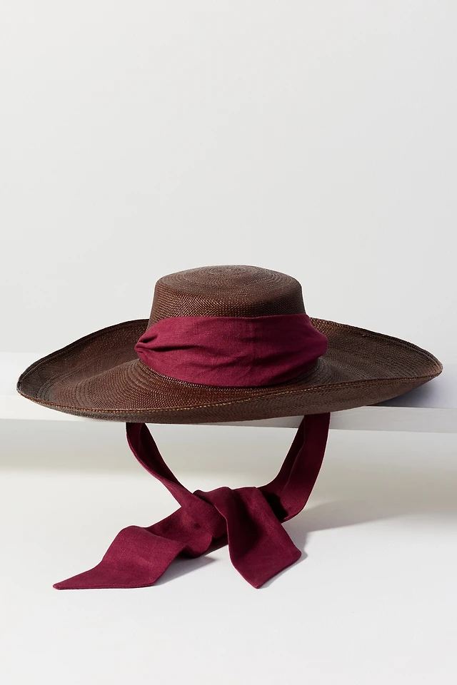 Sensi Studio Wide Ribbon Tie Floppy Straw Hat