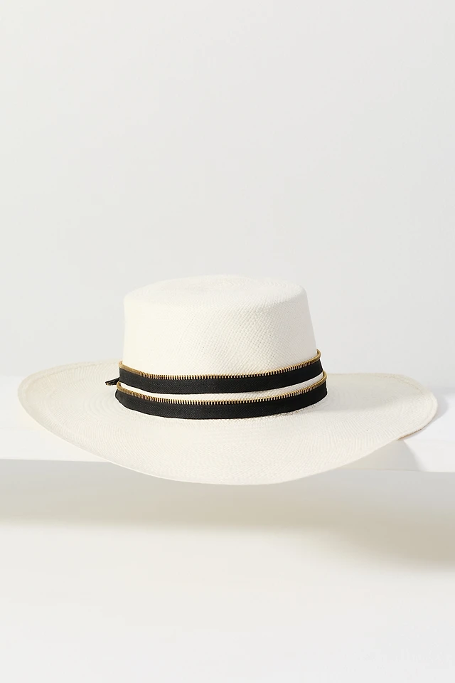 Sensi Studio Zipper Trim Straw Cordovan Hat