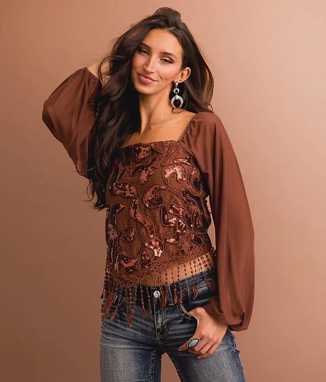 Sequin Lace Fringe Cropped Top