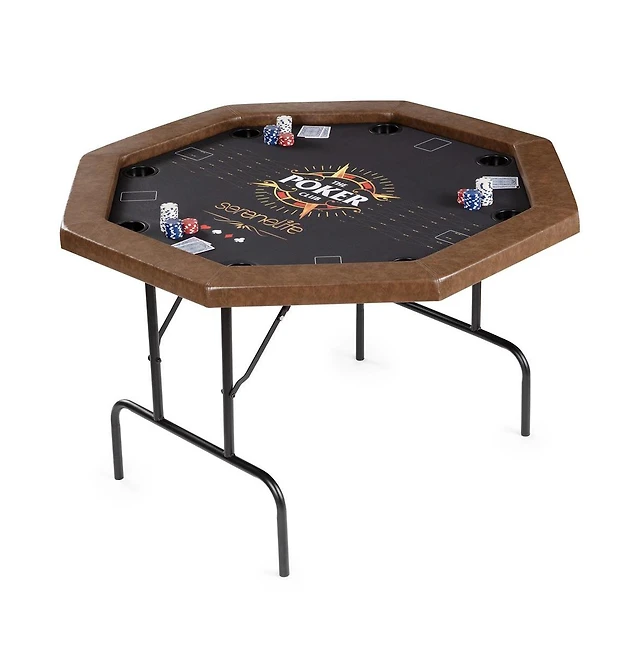 Mecale Foldable Poker Table, 48" Octagonal 8-Player Folding Casino Table with Padded Rails and Cup Holders