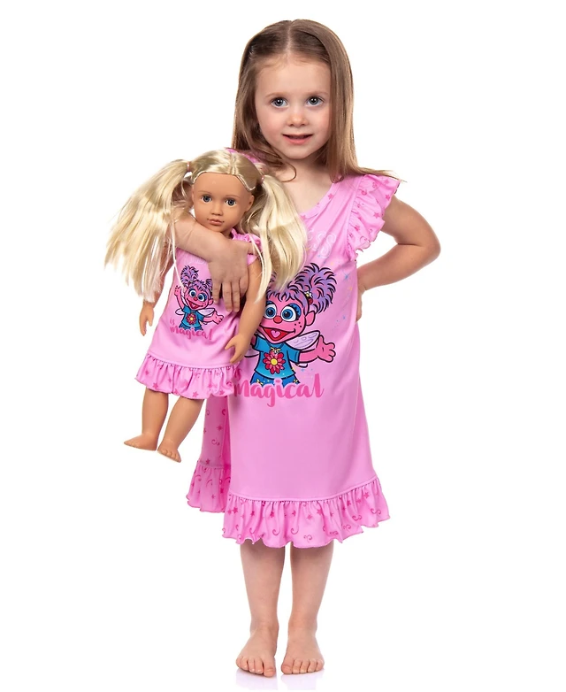Sesame Street Toddler Girls Abby Cadabby Kindness is Magical Pajama Nightgown With Matching Doll Dress