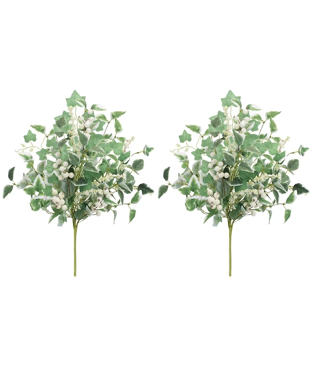 Set of 2 Mixed Foliage & Berry Bush – 20" Polyester Plants for Home Decor