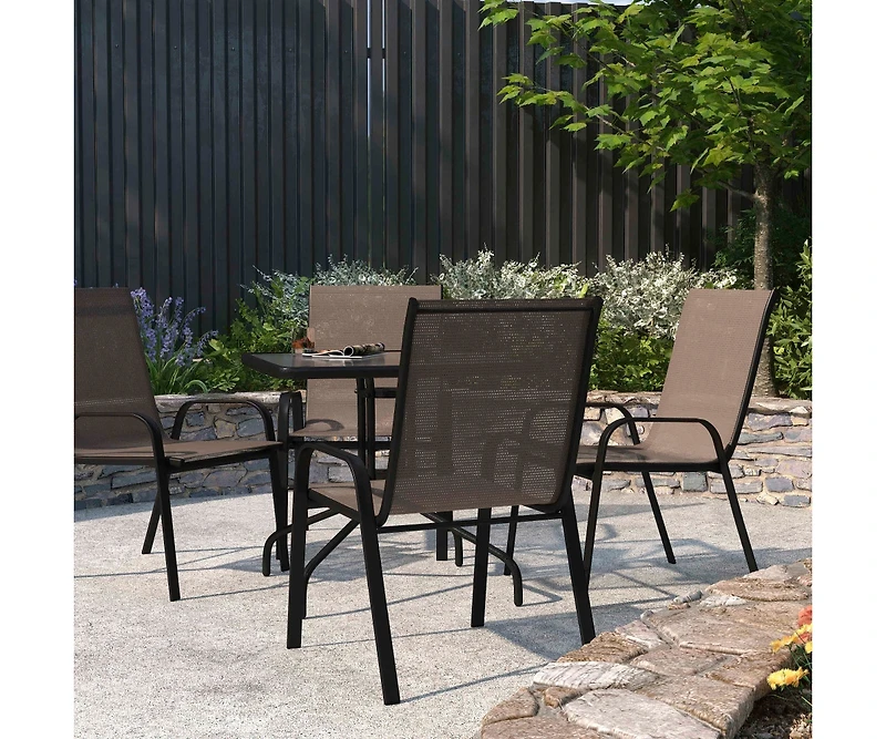 Set Of 4 Manado Series Metal Stacking Patio Chairs With Flex Comfort Material