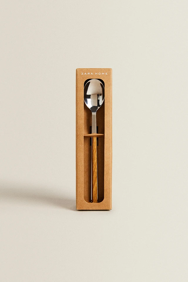 SET OF DESSERT SPOONS WITH WOOD-EFFECT HANDLES (SET OF 4)