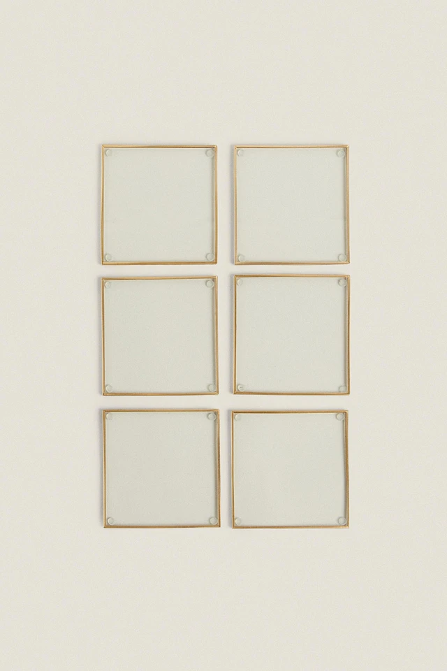 SET OF METAL AND GLASS COASTERS (SET OF 6)