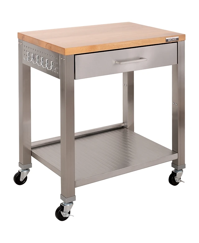 Seville Classics Home Stainless Steel Worktable Cart with Solid Wood Top