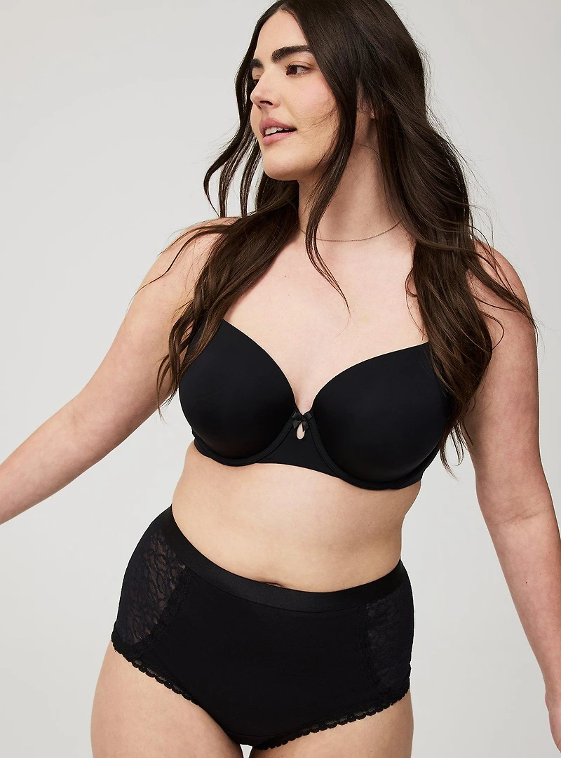 FIT Mid-rise. Full coverage. MATERIALS + CARE Cotton-blend & lace knit fabric. 95% cotton, 5% spandex. Machine wash cold. Dry flat. Imported. DETAILS Elastic waistband. Stretch lace back & side panels. Stretch lace trim. Back keyhole detail.