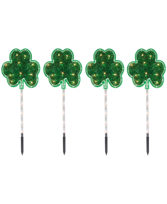 Shamrock St Patrick's Day Pathway Marker Lawn Stakes Clear Lights Set, 4 Piece