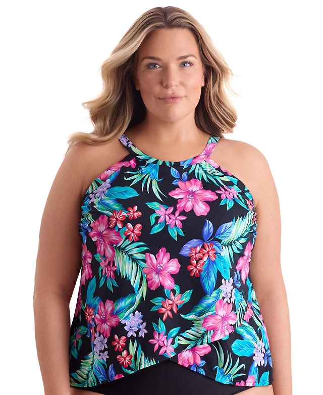 ShapeSolver by Mimi Flamingo Women's Barcelona Blues High Neck Tankini Swimsuit Top