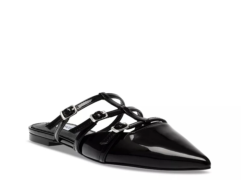 Bring some edge to your look with the Shatter mule from Steve Madden. The patent sheen and triple buckle design add some punk rock touches to your ensemble.