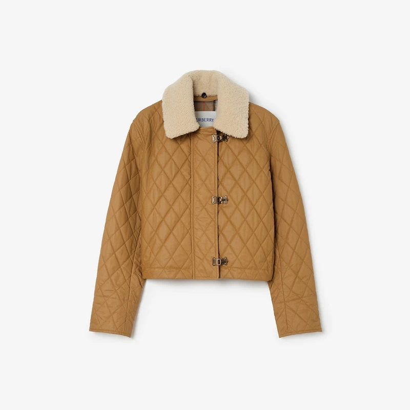 Our signature quilted jacket is refreshed in this cropped silhouette, made from cotton poplin treated for a distressed finish and lined with a tonal Burberry Check. The Howle features a corduroy collar layered with a detachable shearling trim for a textural contrast. A throat latch nods to our signature trench, while the antique finish of the logo-engraved clip hardware gives a vintage feel. Zip and clip closure Throat latch Detachable shearling collar Side press-stud slip pockets Press-stud cuffs Burberry Check lining and undercollar Comes with a garment bag