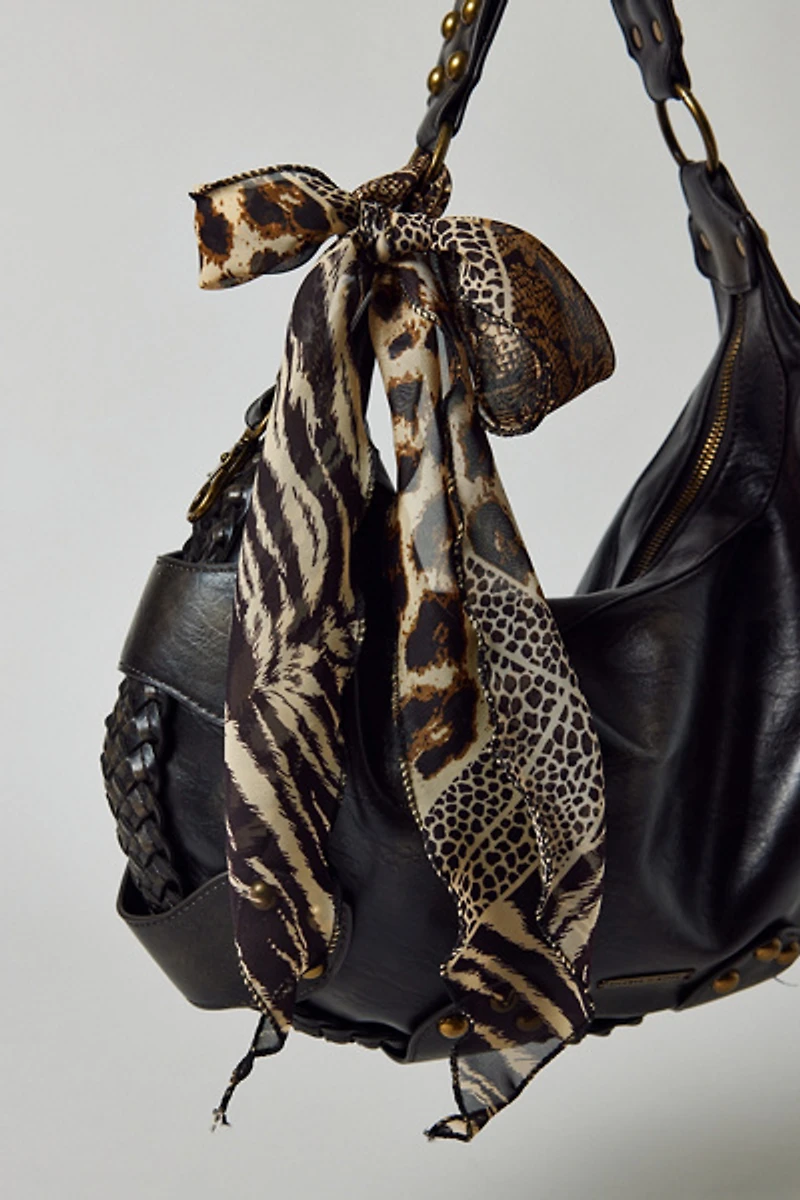 Update your look & add this skinny scarf to your hair, bag and more. Allover pattern sheer scarf with a throwback '00s look.