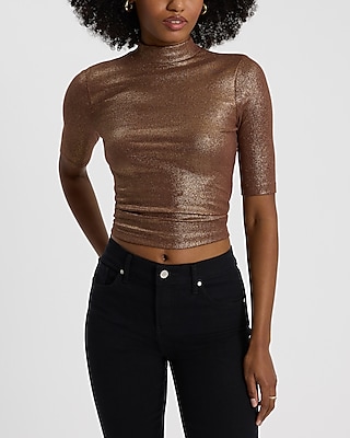 This shiny elbow sleeve top is perfect from day to night. This tee will pair perfectly with your best dress pants and favorite Express jeans to make you shine all day long.