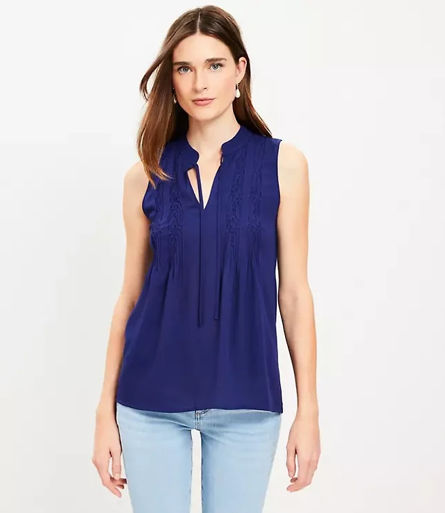 Petite Pleated Yoke Mixed Media Shell
