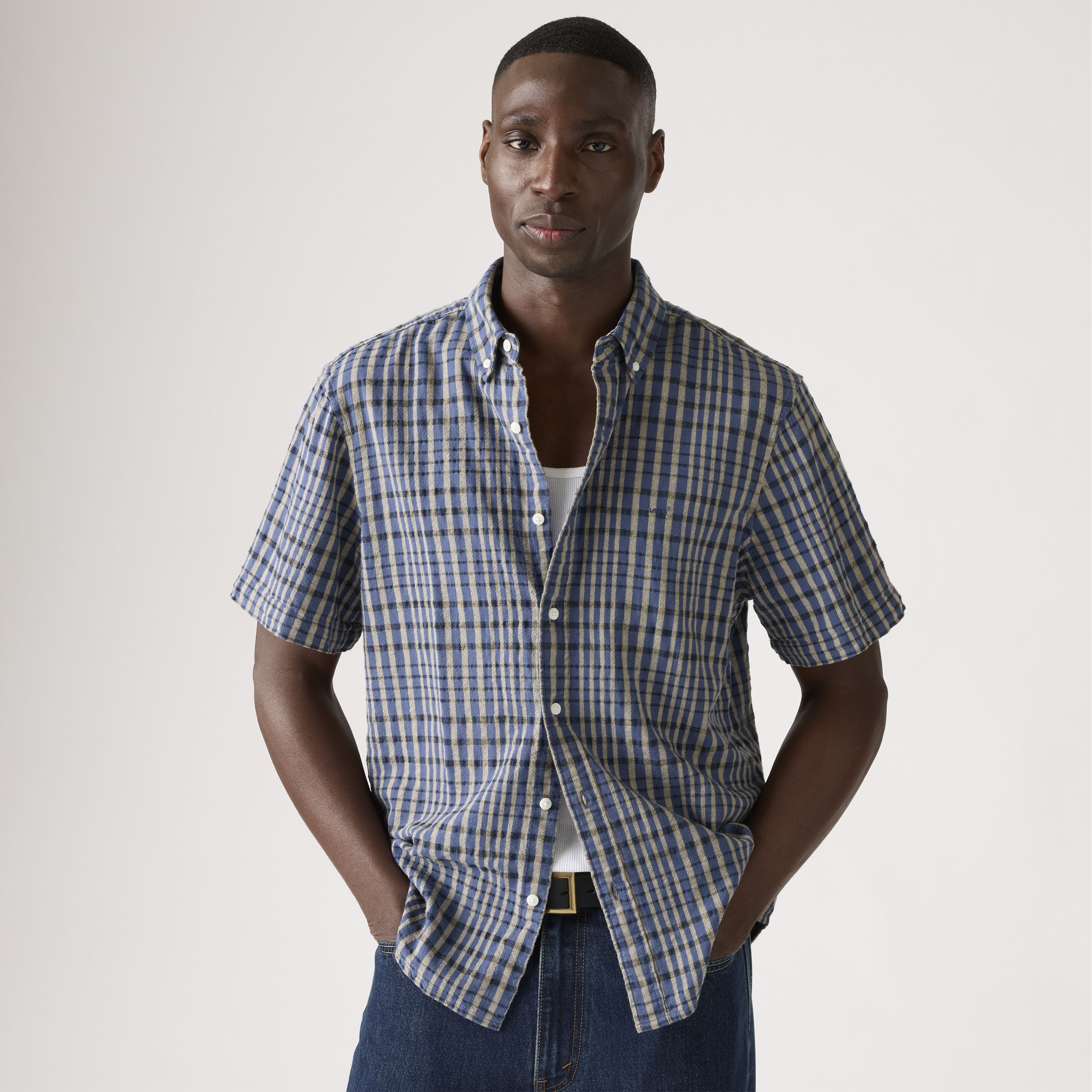 Our denim and shirts were made for each other—and this Short-Sleeve Authentic Button-Down Shirt proves it. We designed it with a casual, relaxed fit and a classic button-up front.