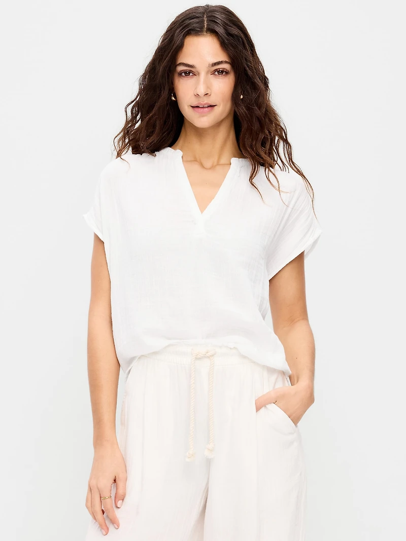 Short-Sleeve Crinkle Gauze Popover Top in Bloomington, MN