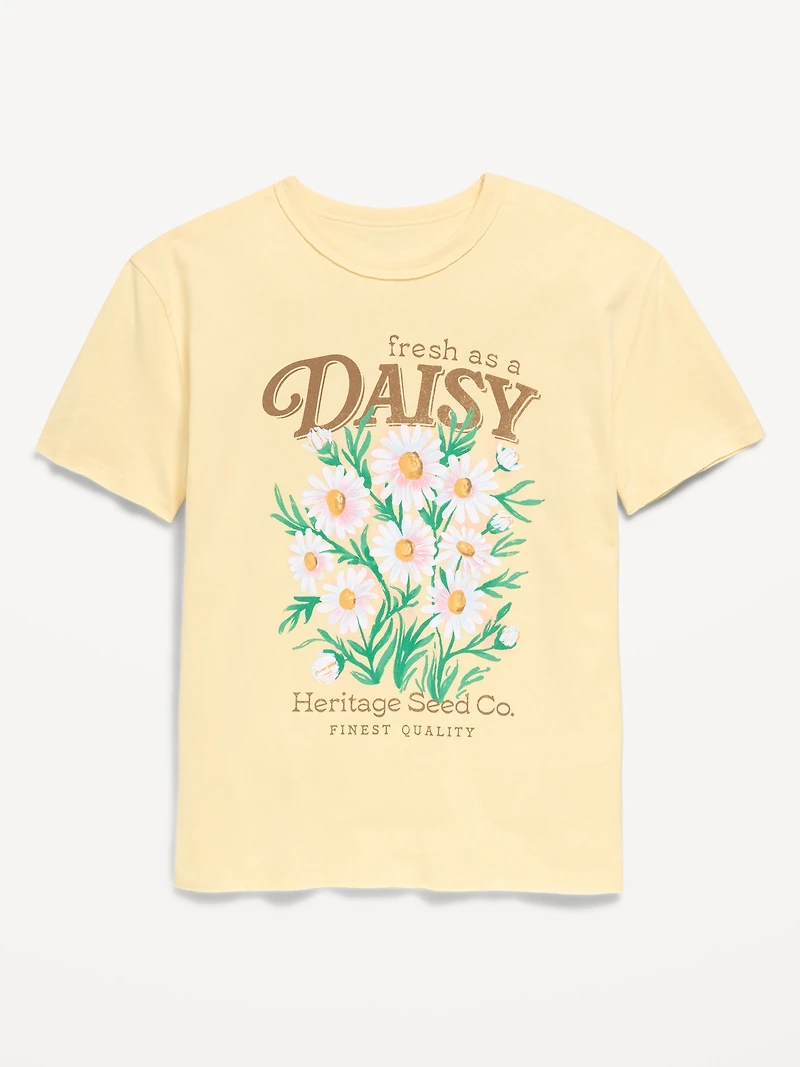 crew neck short sleeves drop shoulders graphic at front raw-edge hem oversized fit hits below hip tunic stylemachine wash according to the care instruction label .