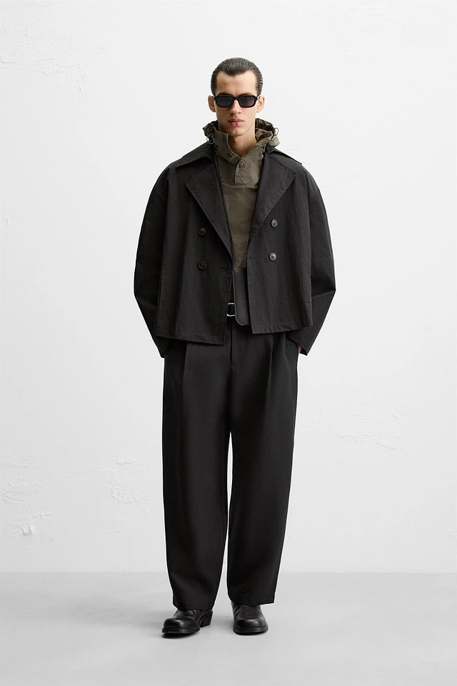 SHORT TECHNICAL FABRIC TRENCH COAT