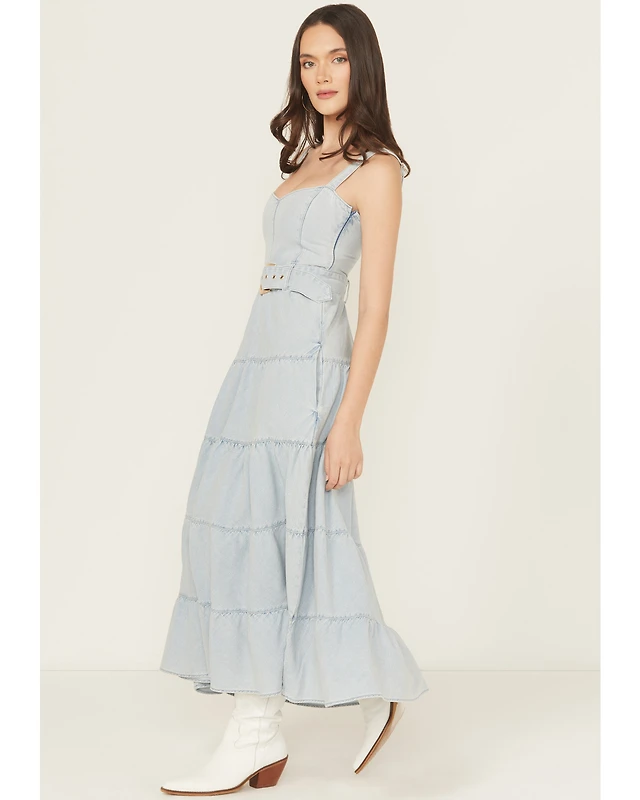 Show Me Your Mumu Women's Light Wash Lainey Sleeveless Denim Midi Dress