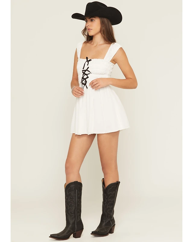 Show Me Your Mumu Women's Mabel Bow Smocked Sleeveless Mini Dress