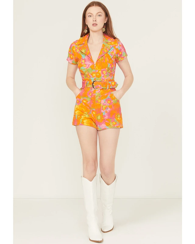 Show Me Your Mumu Women's Outlaw Floral Print Short Sleeve Romper