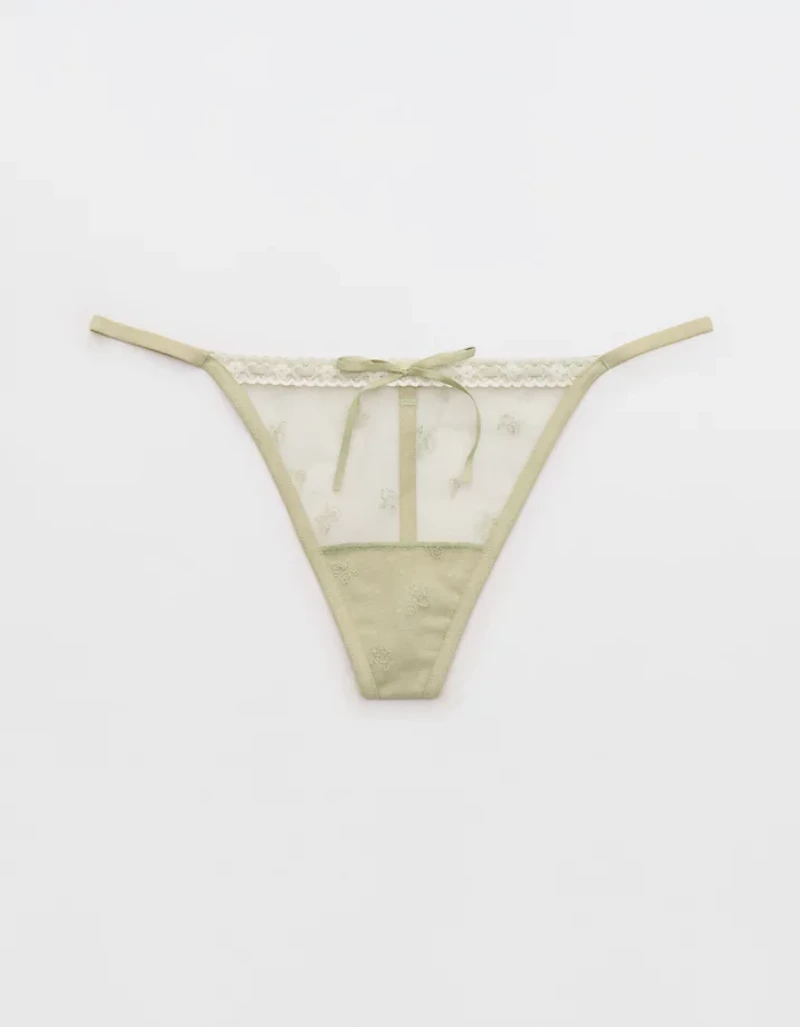 Feminine, vintage-inspired embroidery in a low rise string thong fit.