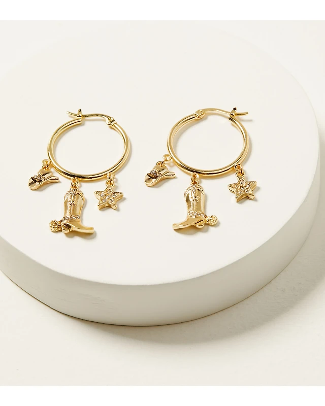 Shyanne Women's 14K Gold Western Charm Dangle Hoop Earrings