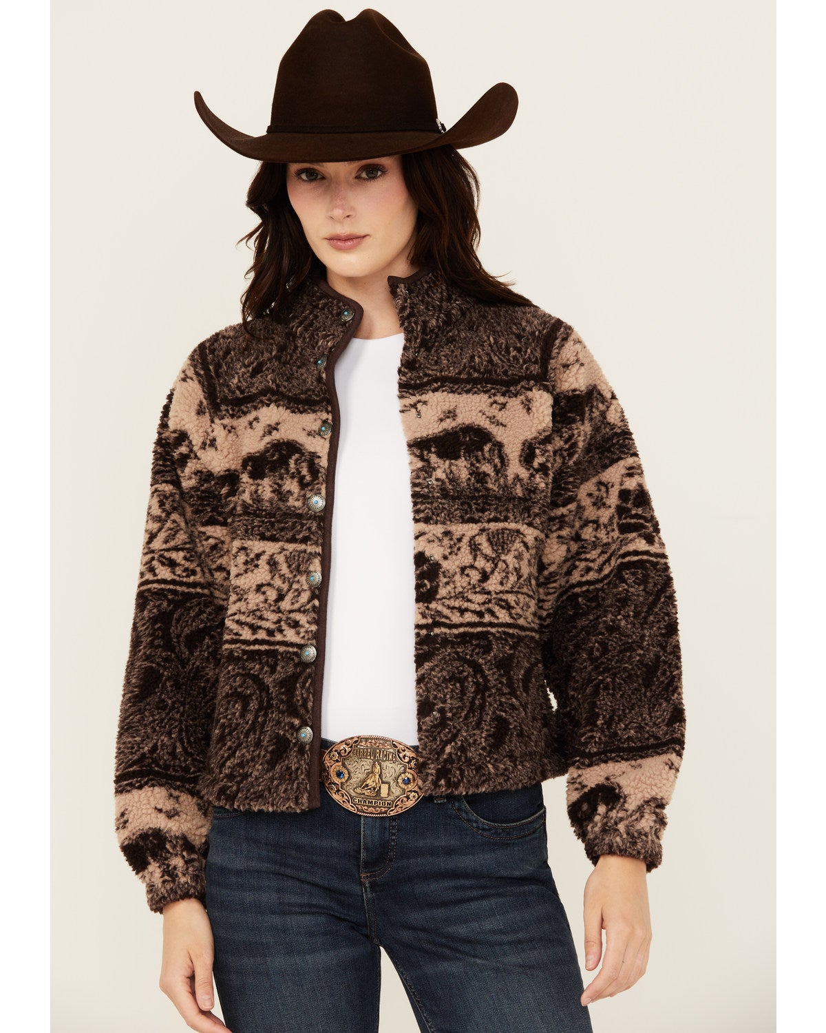 Shyanne Women's Buffalo Print Snap Sherpa Jacket