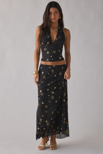 UO Shimmer Haze Beaded Embroidered Mesh Skirt 2-Piece Set
