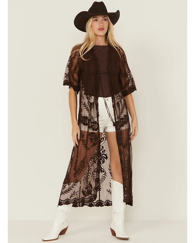Shyanne Women's Tie-Front Embroidered Mesh Kimono
