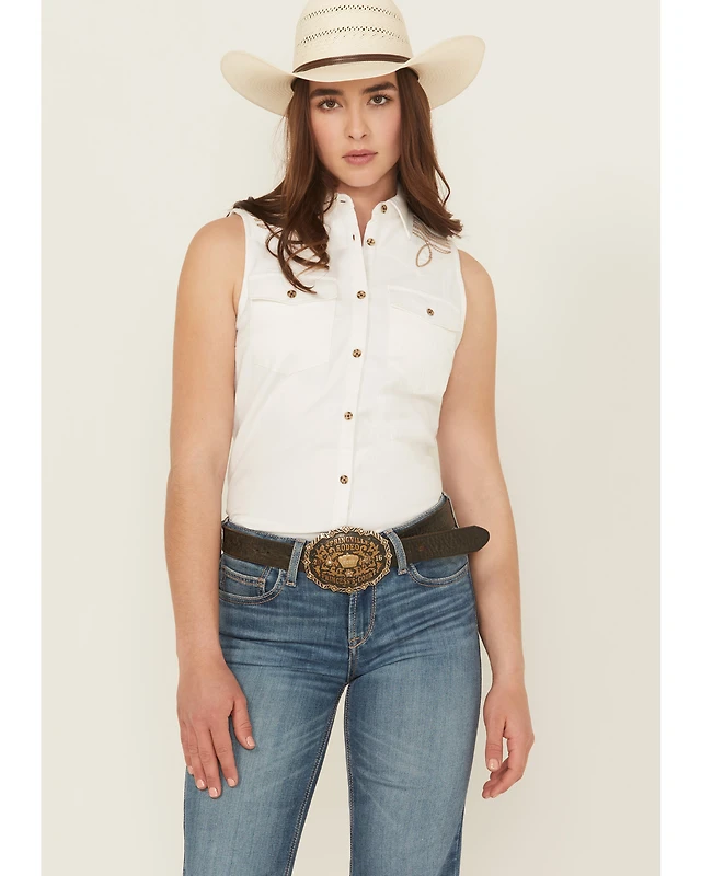 Shyanne Women's Embroidered Sleeveless Button-Down Western Shirt