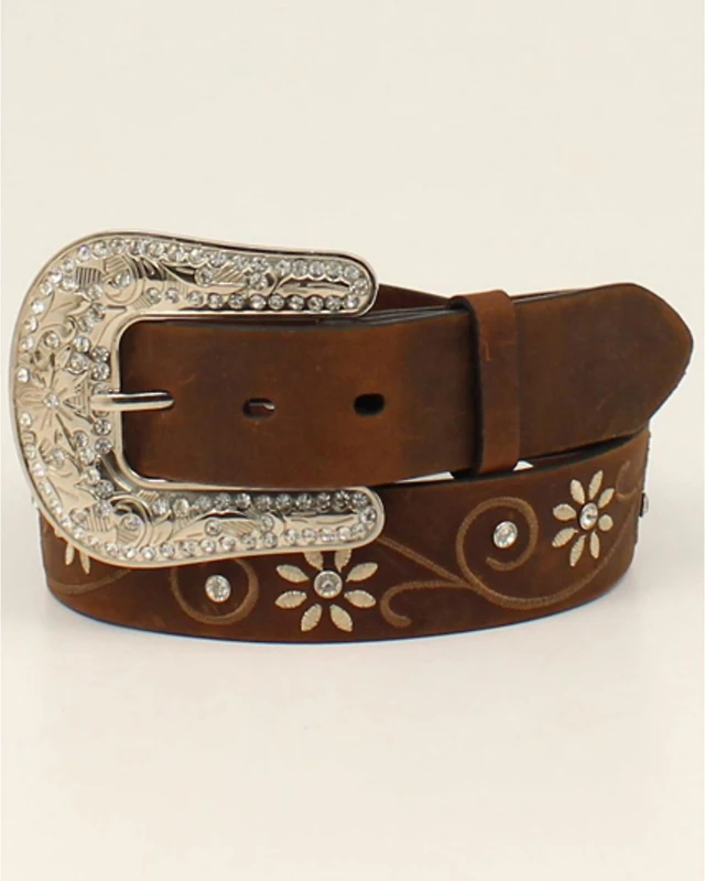 Shyanne Women's Chocolate Floral Embroidered Crystal Western Belt